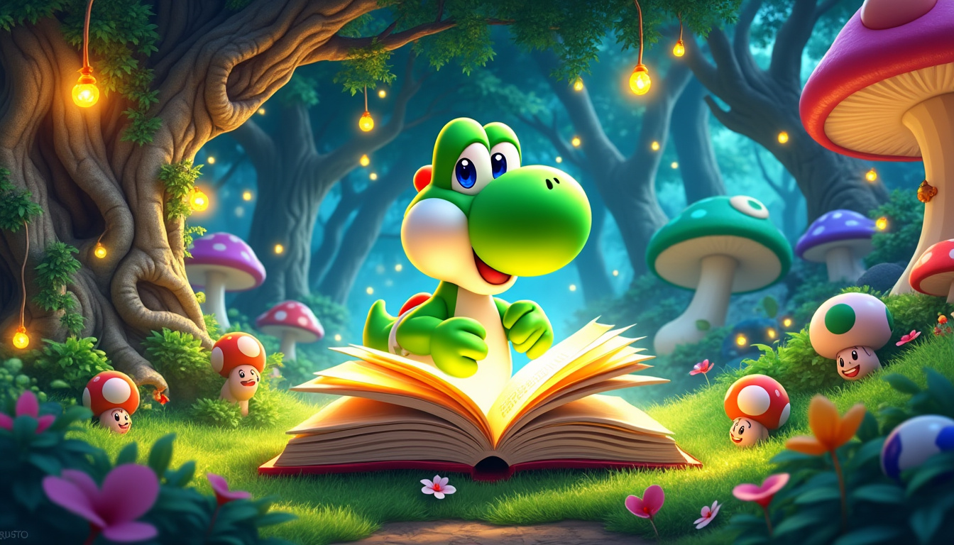 Nintendo n’a jamais manqué de créer des univers vibrants dans ses jeux, et « Yoshi et le Livre Mystérieux » promet de perpétuer cette tradition. Le point de départ de cette aventure commence avec la chute d’un livre mystique, nommé M. Encyclopédie, sur l’île des Yoshis. Ce livre est spécial, car il est doté de la parole et contient une myriade de secrets concernant des créatures fantastiques. Cependant, il reste énigmatique, incapable de lire ce qui est écrit sur ses propres pages.